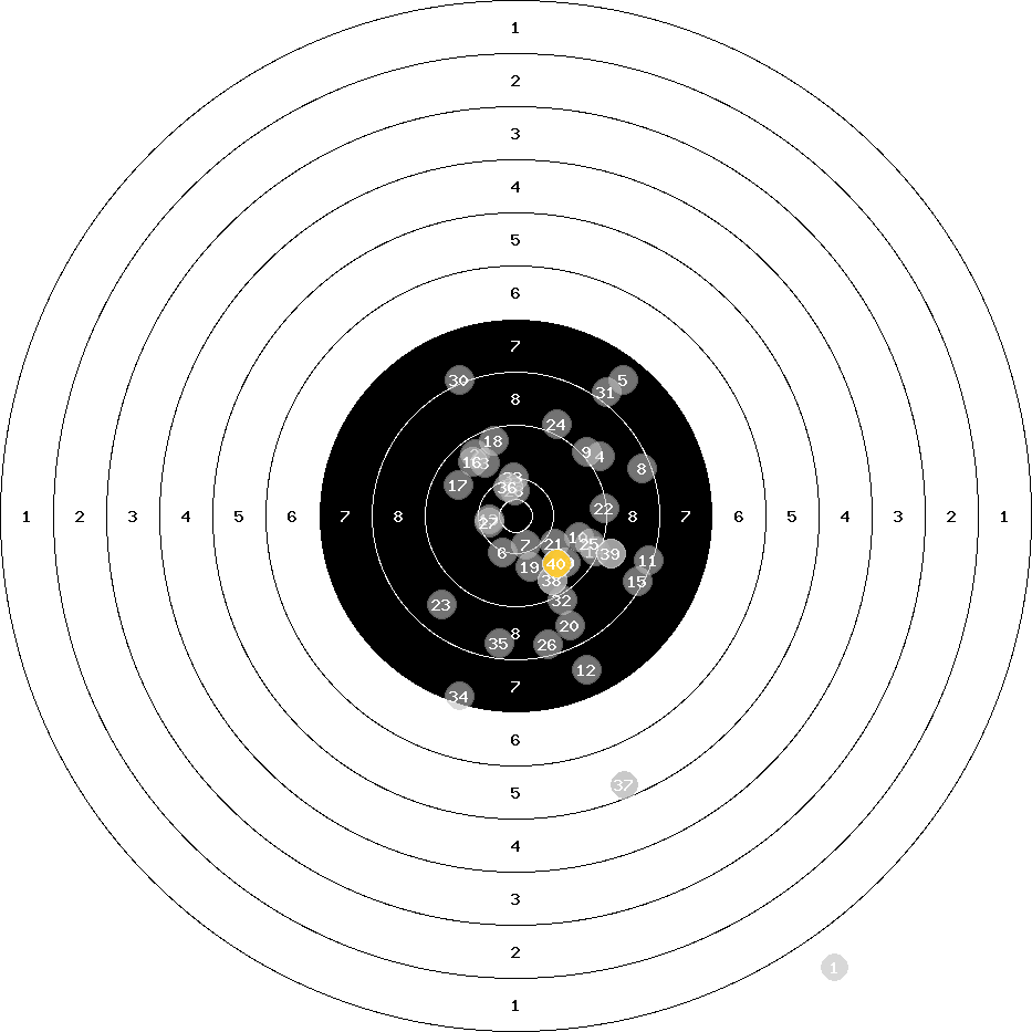 hit position: 5.06 mm right, 9.37 mm low