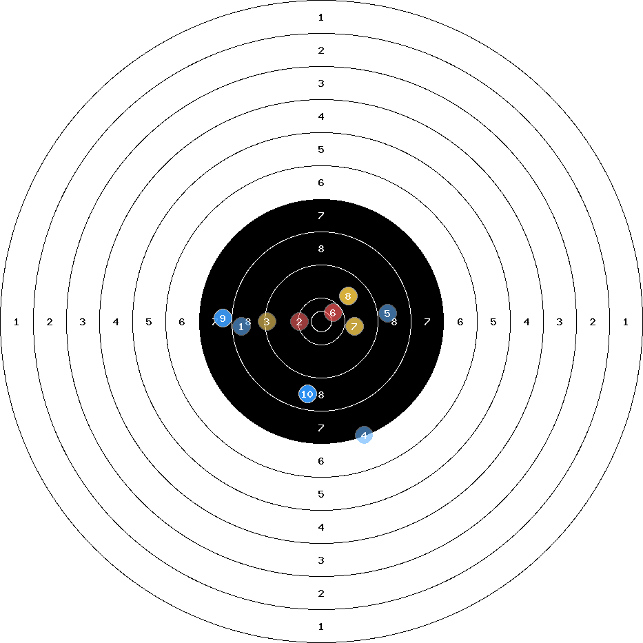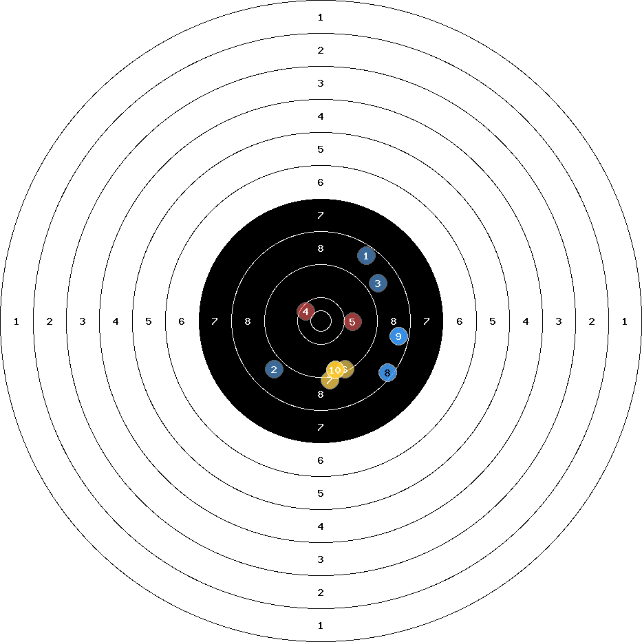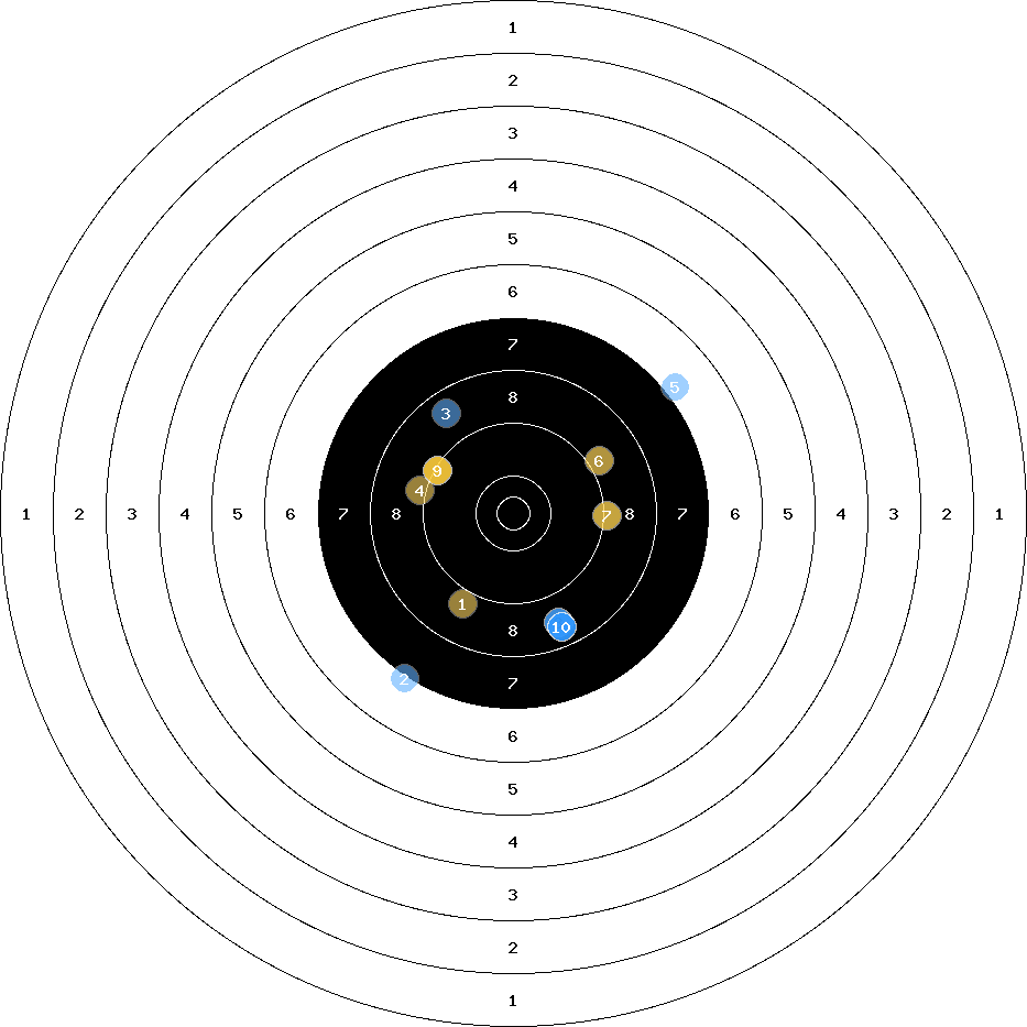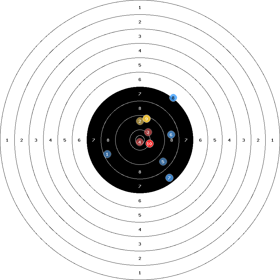 hit position: 6.43 mm right, 3.86 mm low