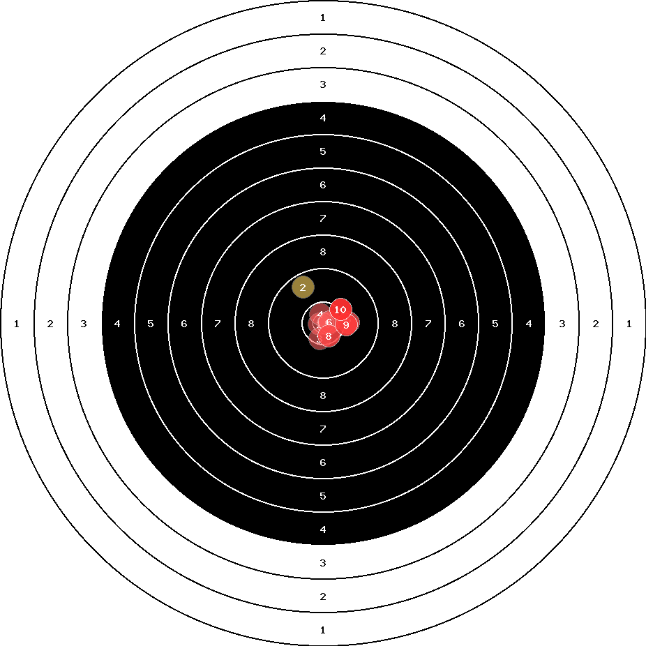 hit position: 0.6 mm left, 0.57 mm low