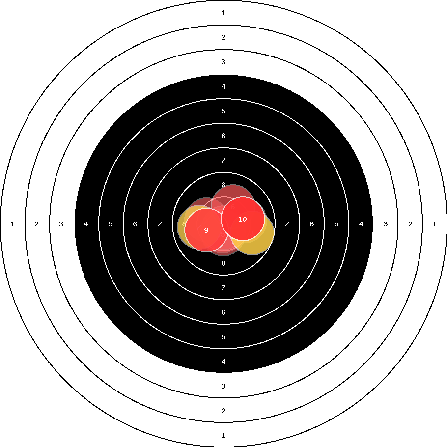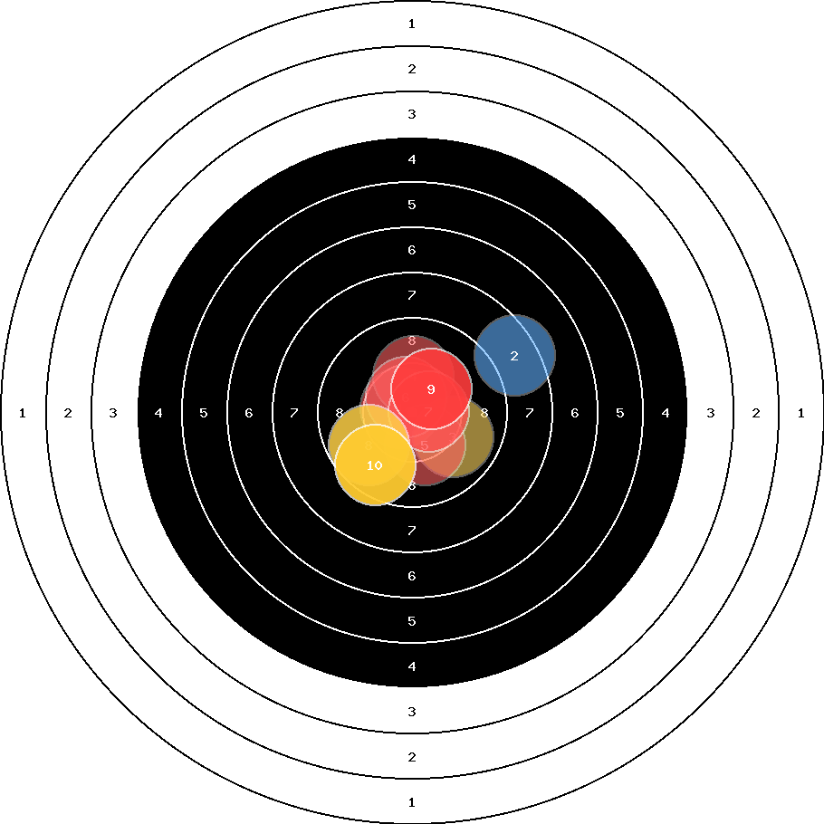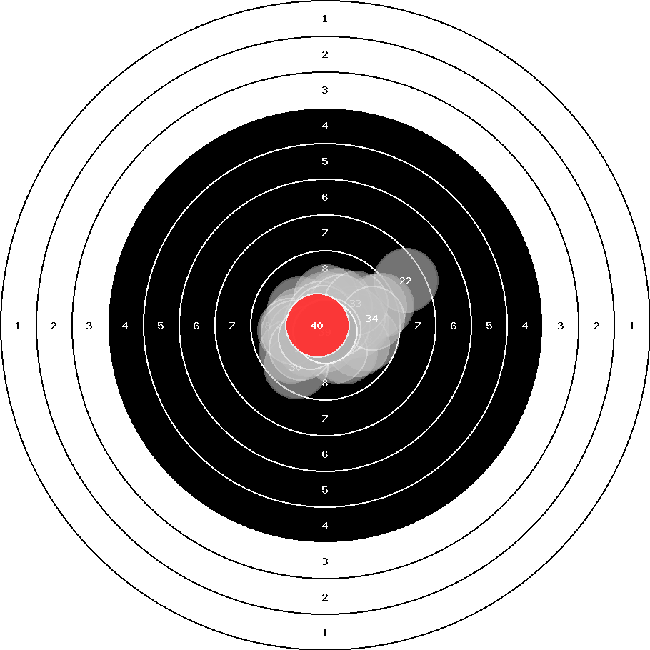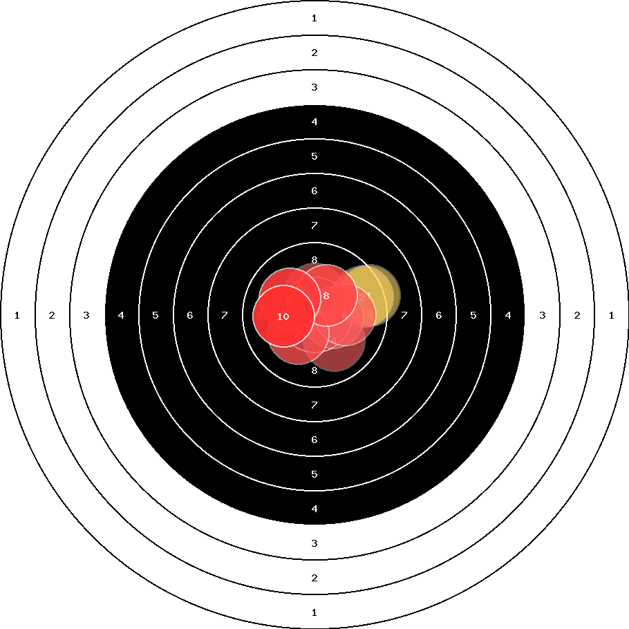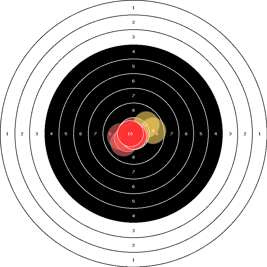 hit position: 0.8 mm rechts, 0.32 mm hoch