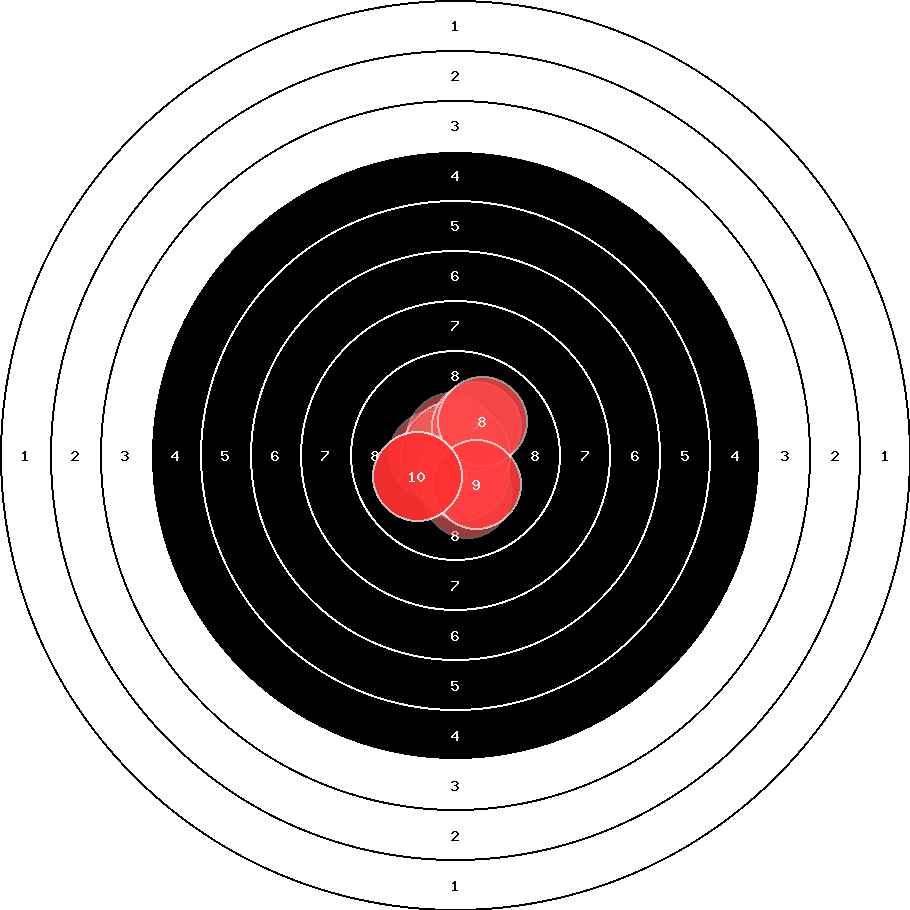 hit position: 0.49 mm rechts, 0.14 mm hoch