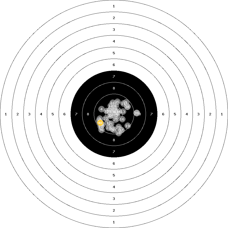 hit position: 1.13 mm rechts, 2.14 mm tief