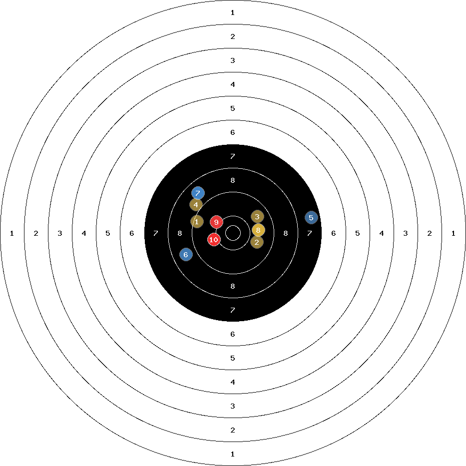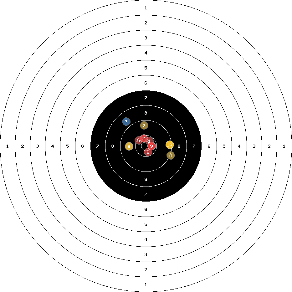 hit position: 0.61 mm rechts, 2.61 mm hoch