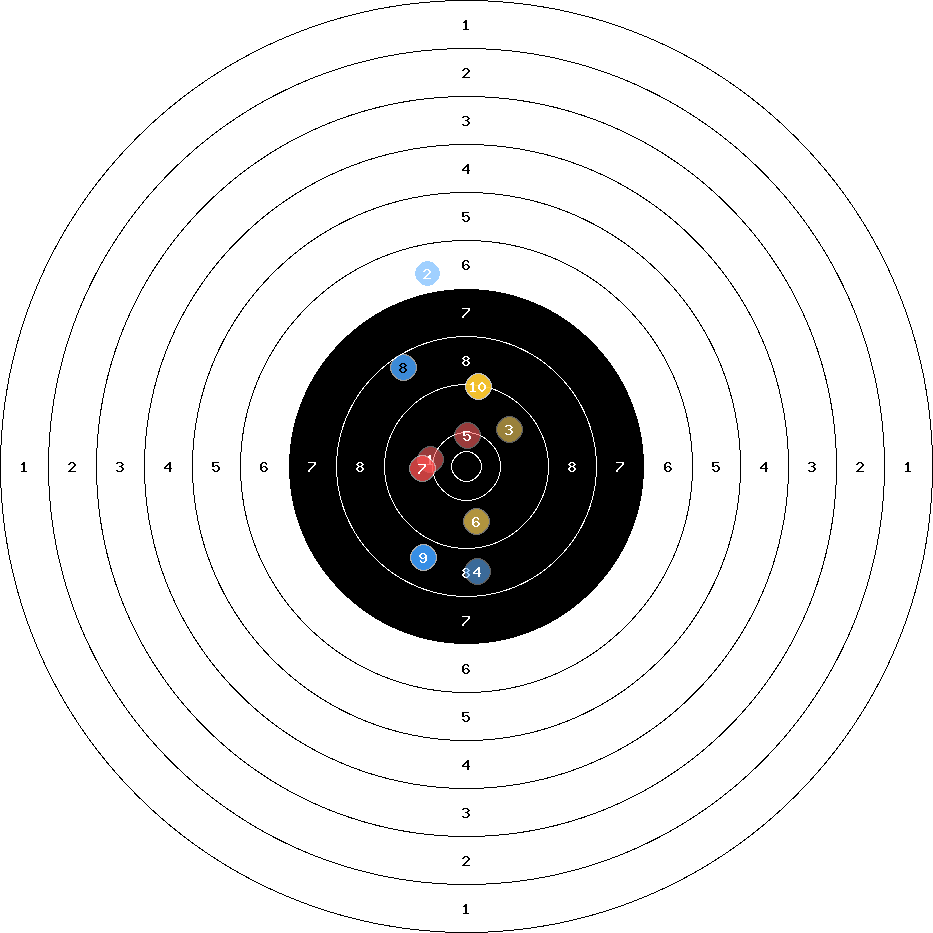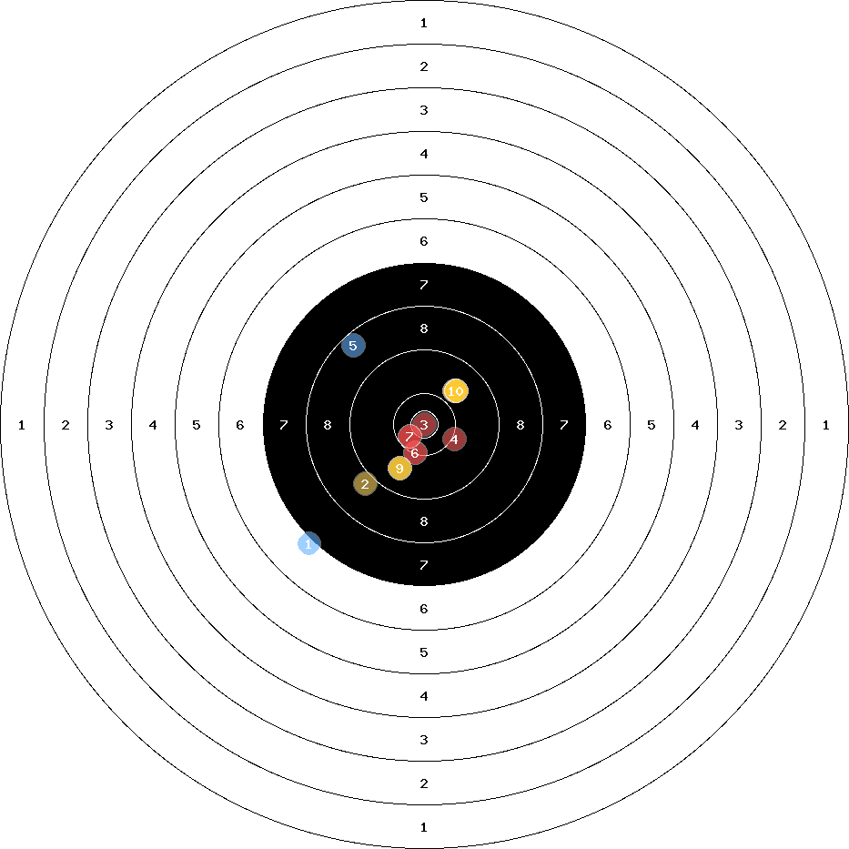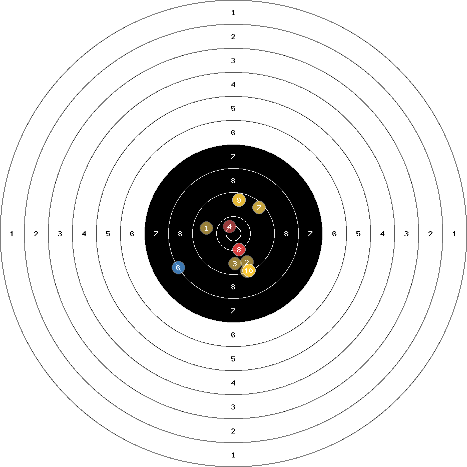 hit position: 0.38 mm rechts, 0.46 mm hoch