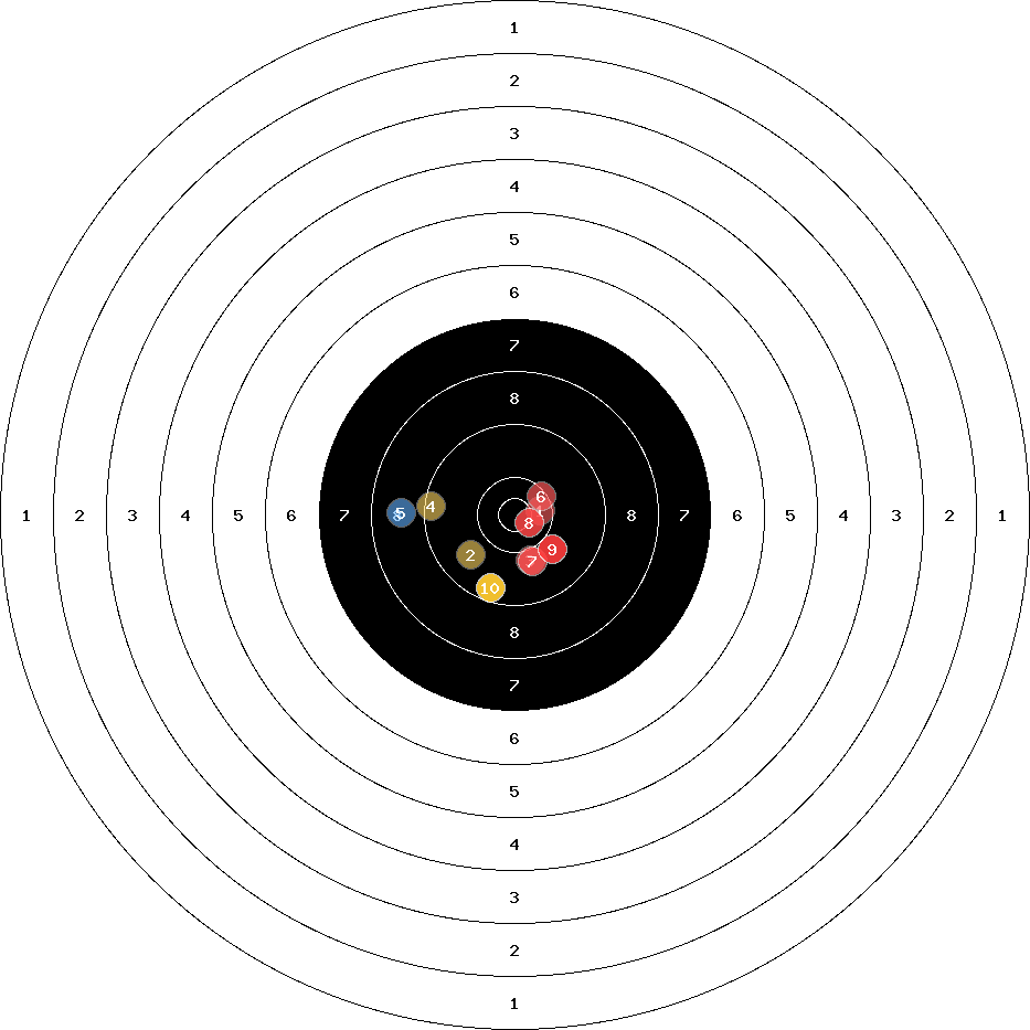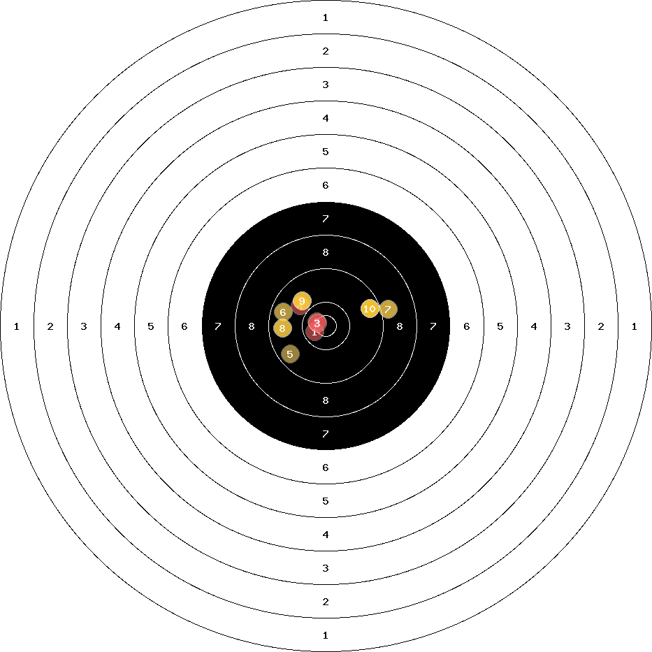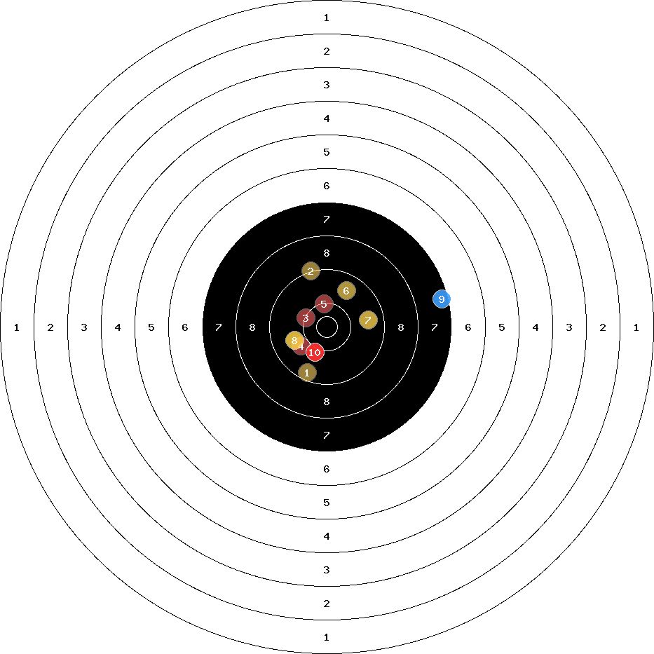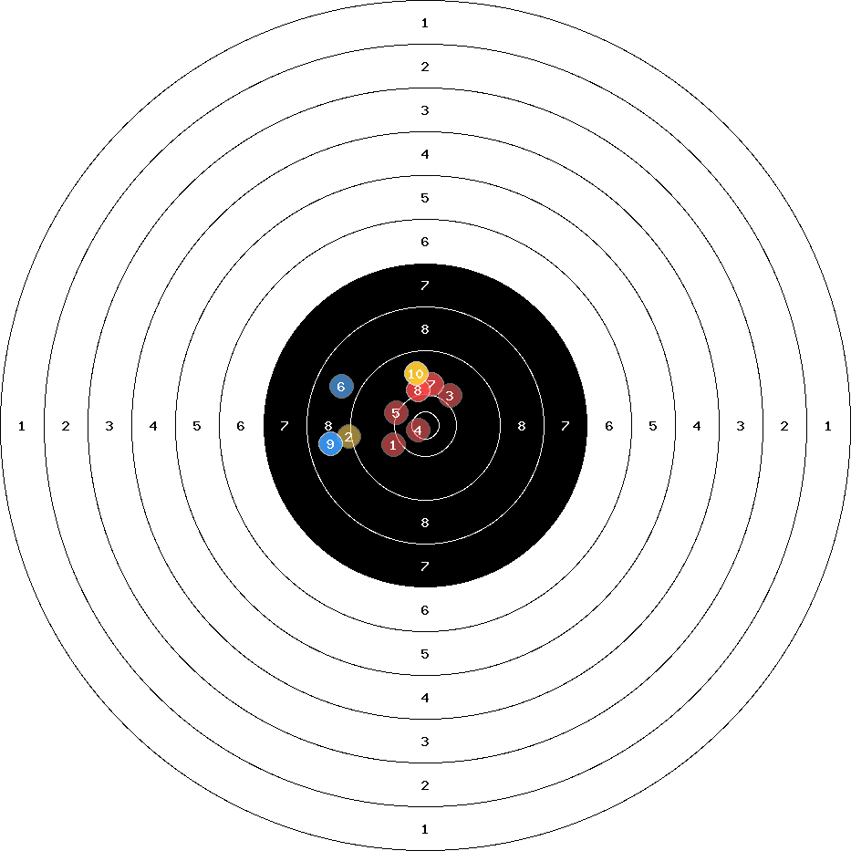 hit position: 1.07 mm rechts, 1.38 mm hoch