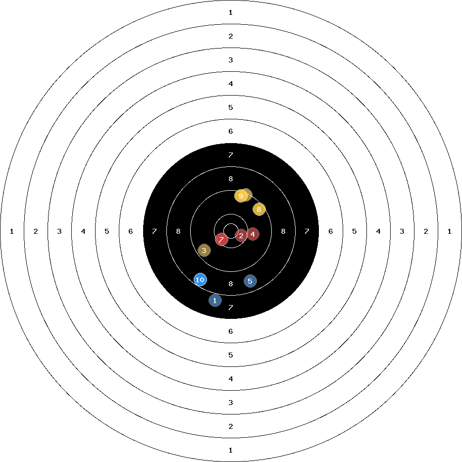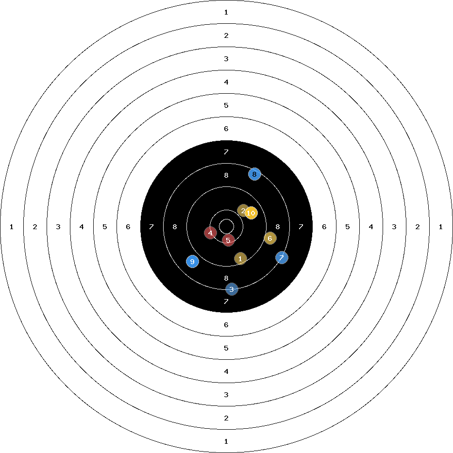 hit position: 4.89 mm rechts, 3.84 mm tief