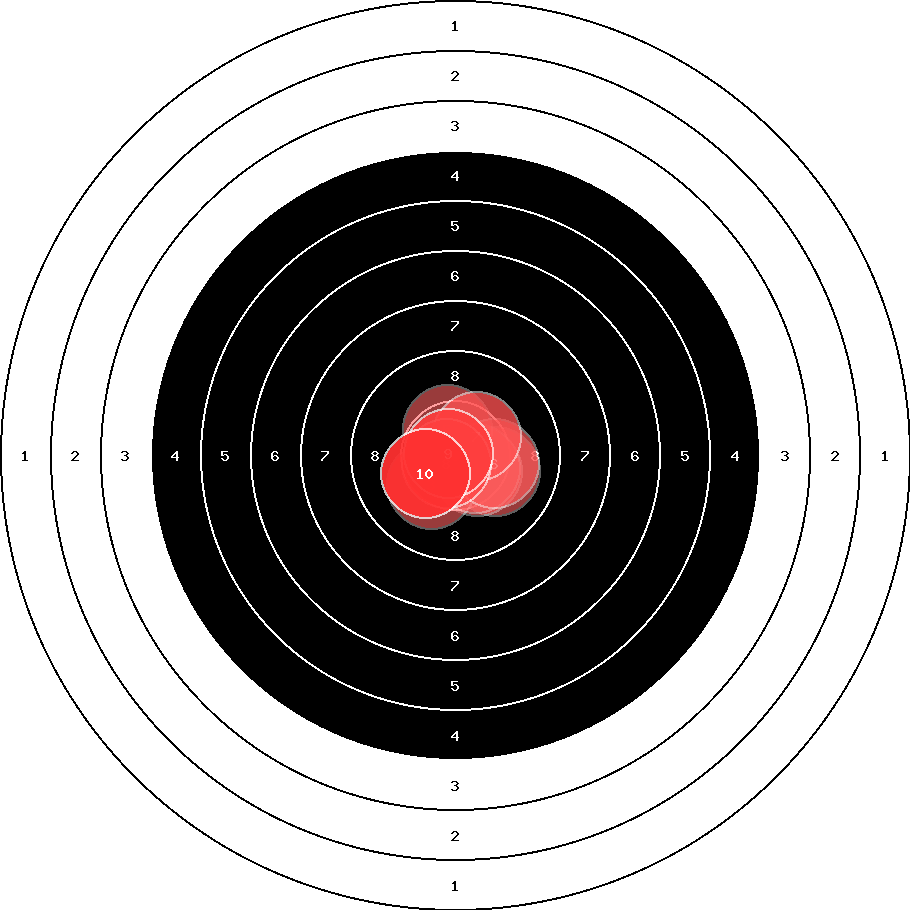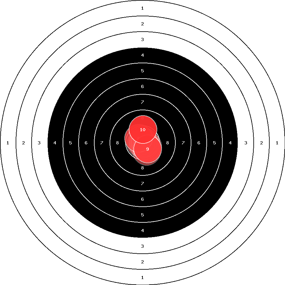 hit position: 0.63 mm rechts, 0.63 mm tief