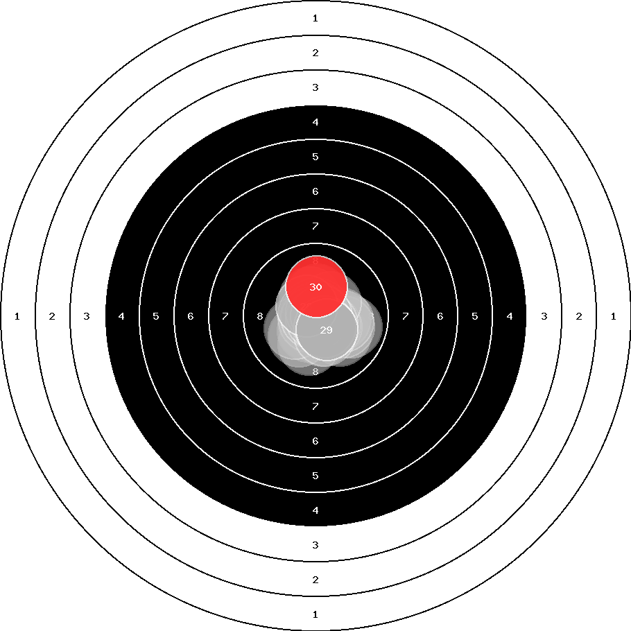 hit position: 0.32 mm rechts, 0.31 mm tief