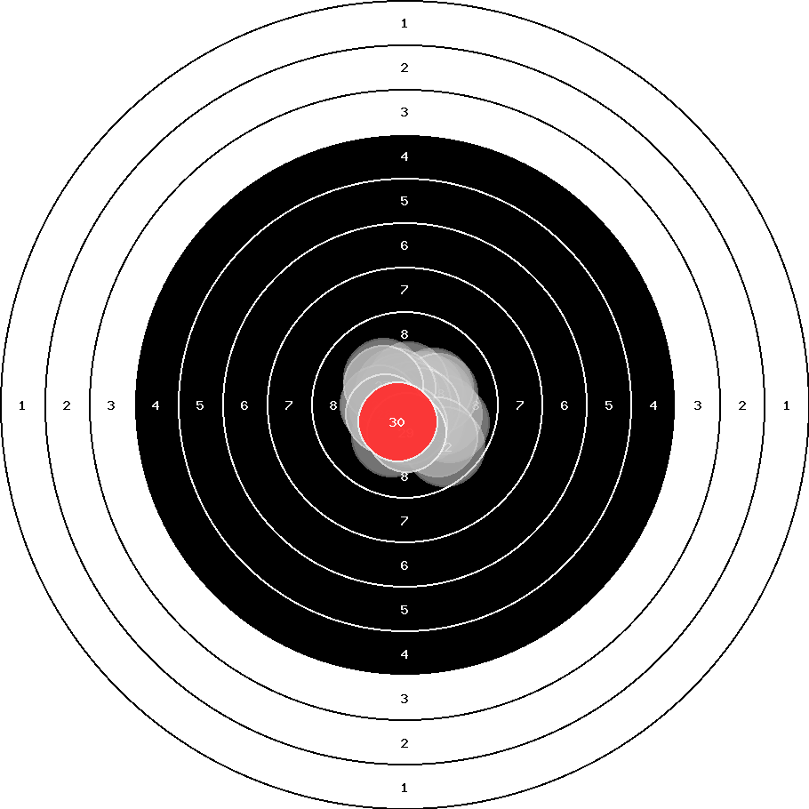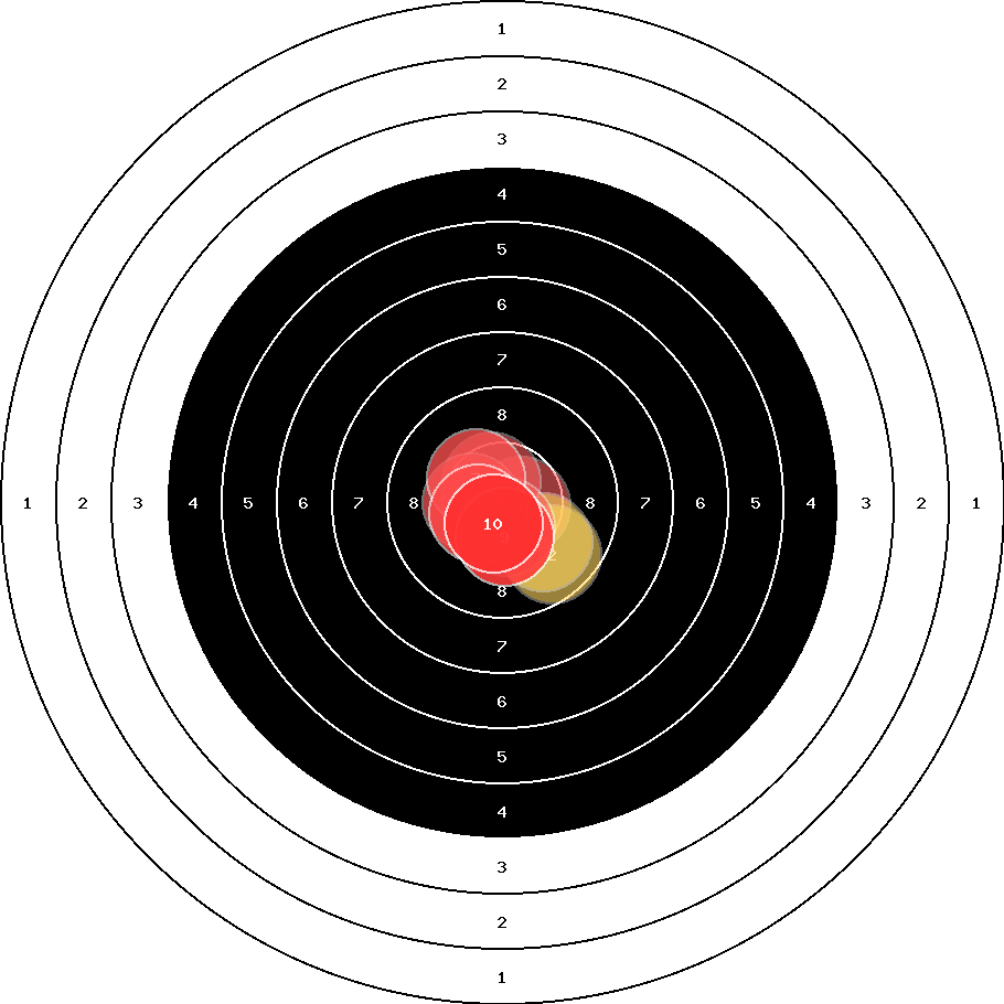 hit position: 0.5 mm rechts, 0.13 mm hoch