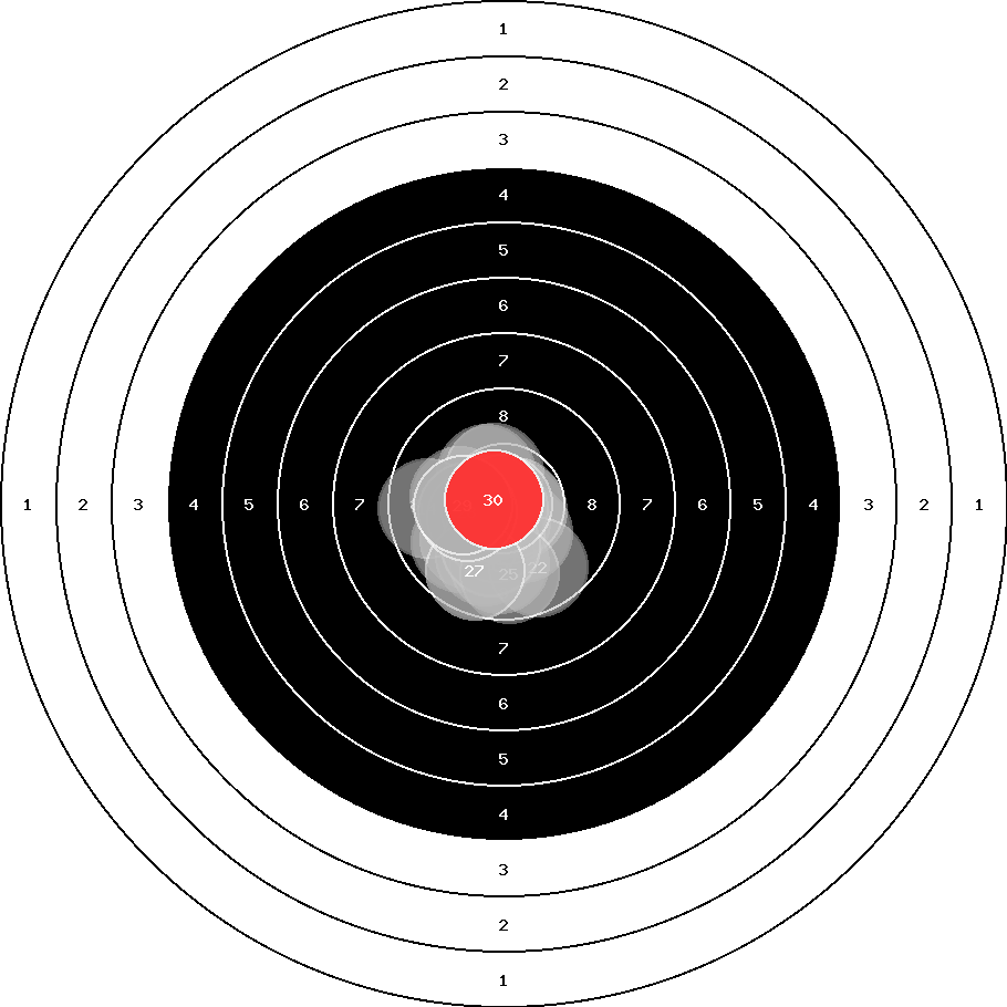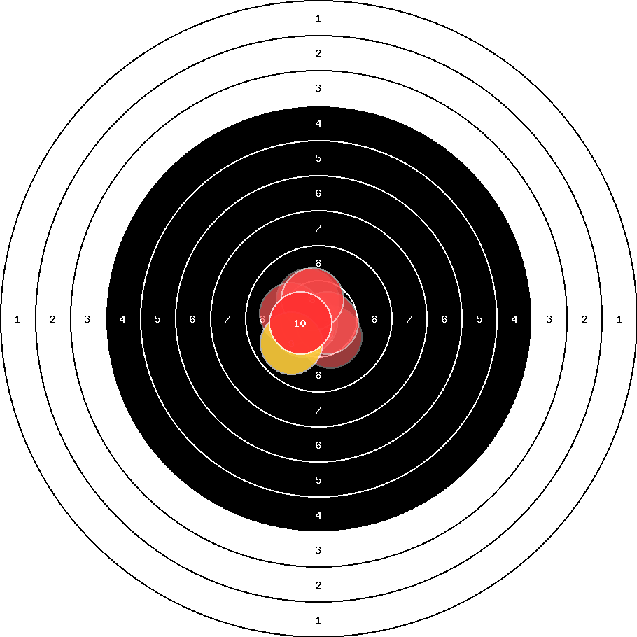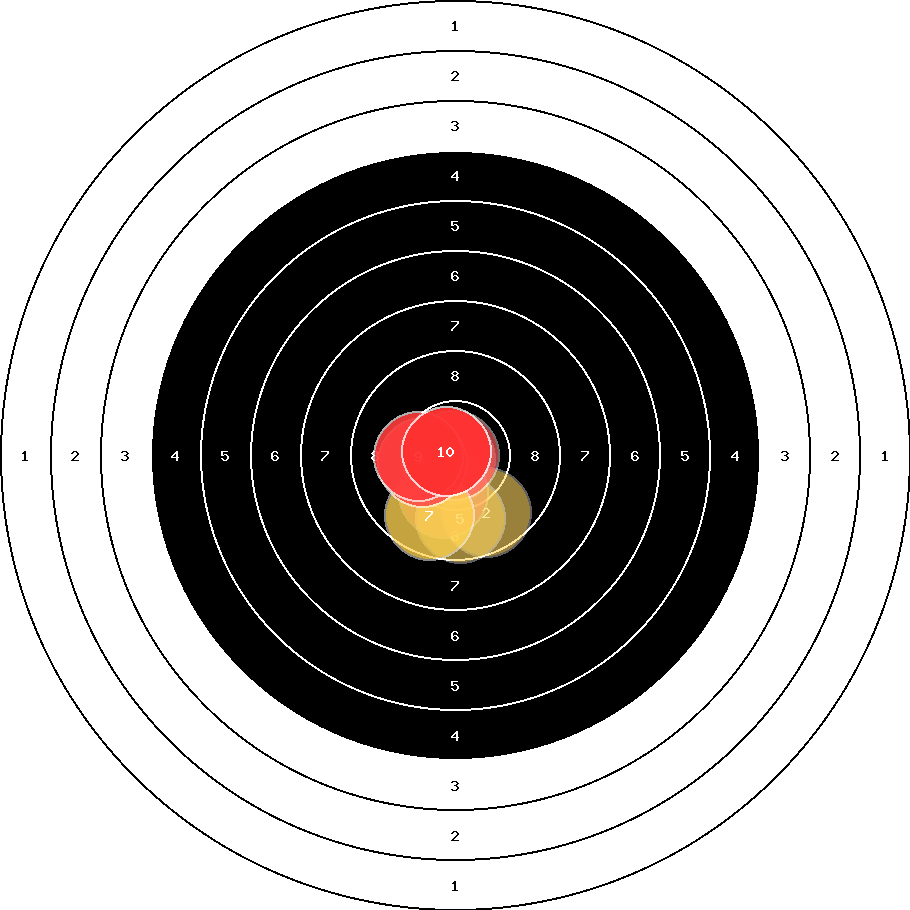 hit position: 0.74 mm left, 0.84 mm low