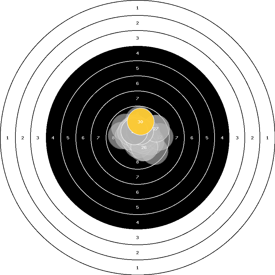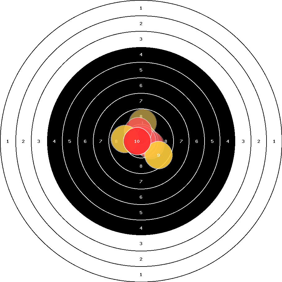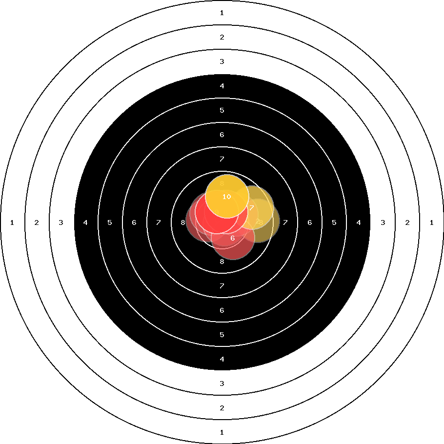 hit position: 0.21 mm rechts, 0.21 mm hoch