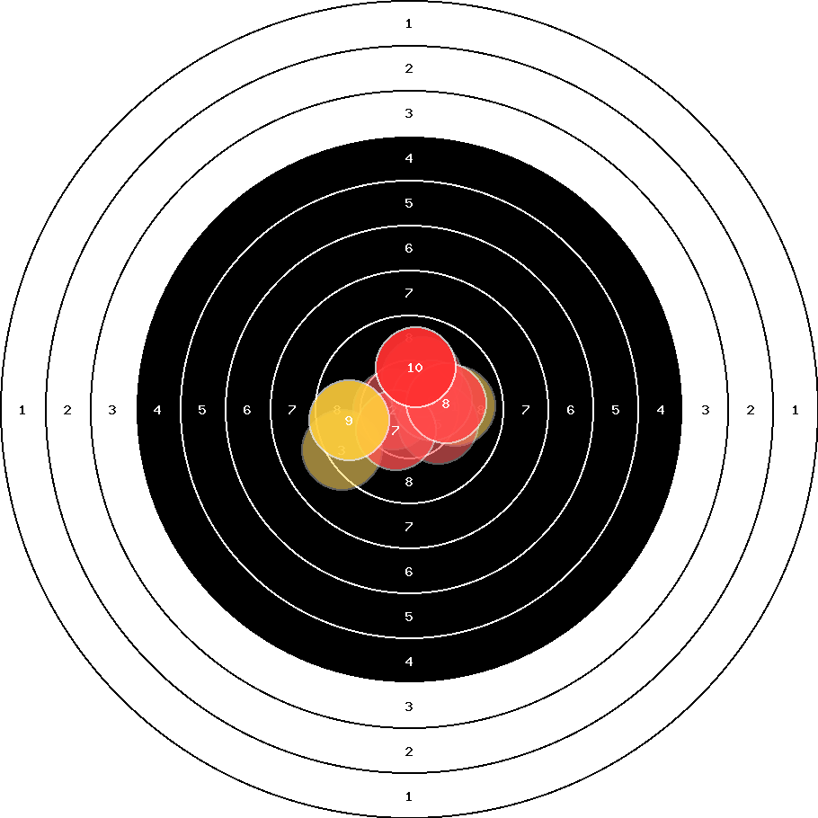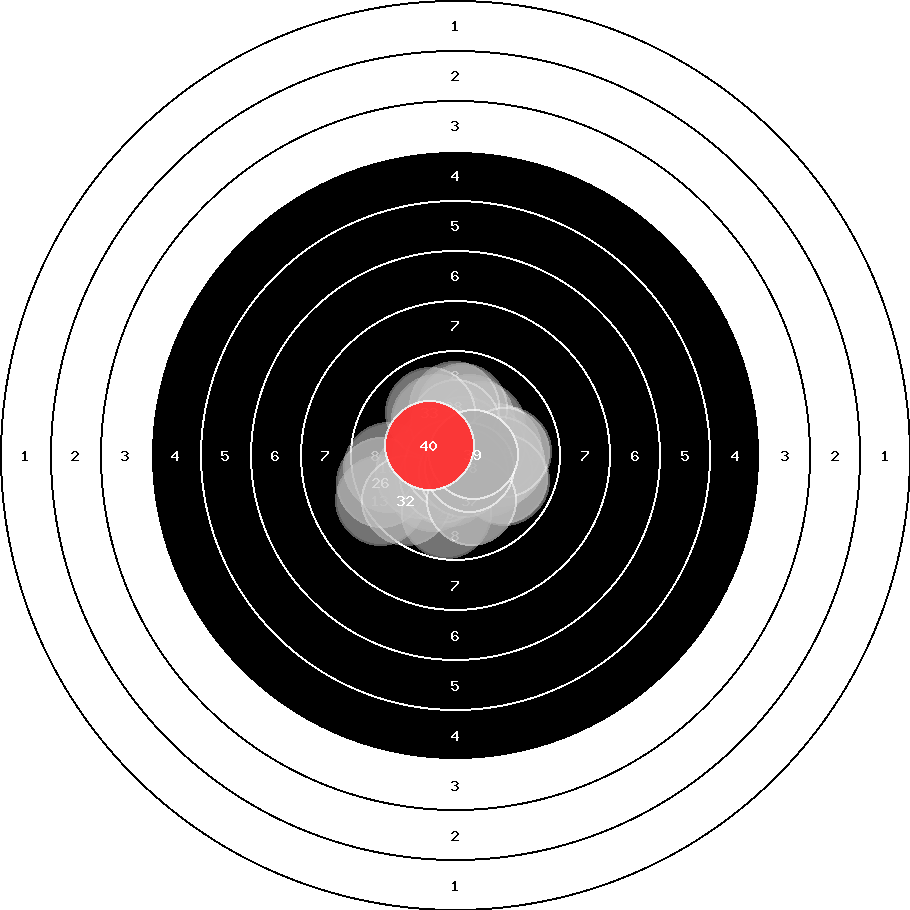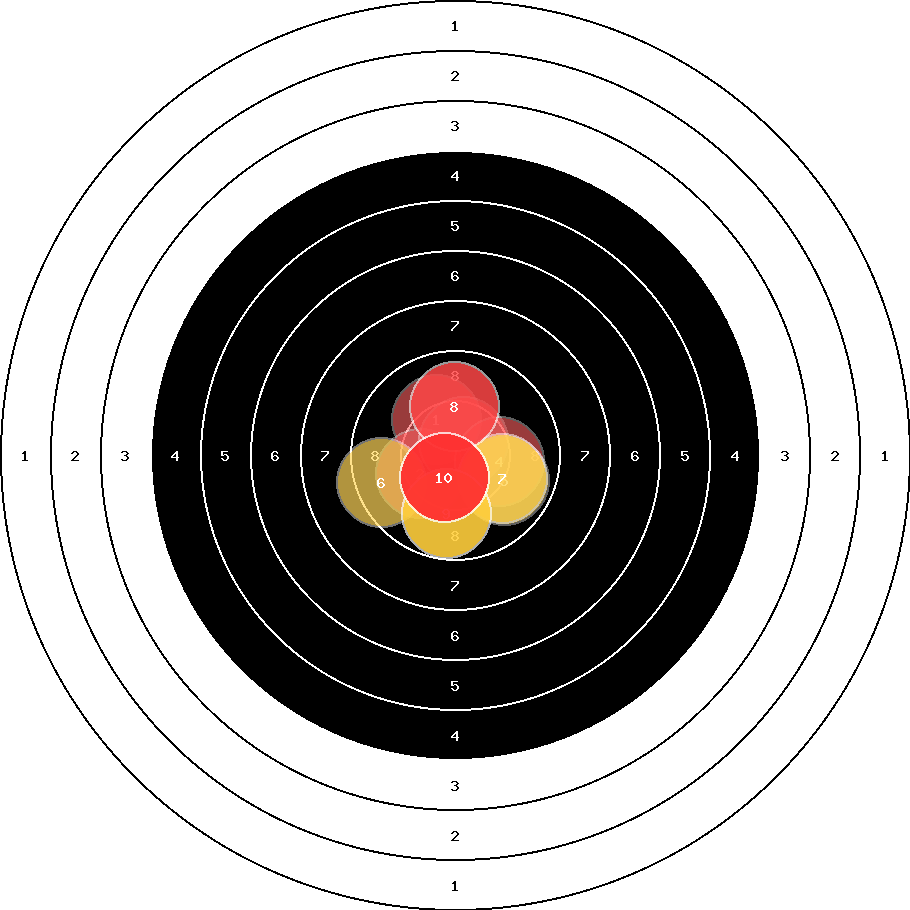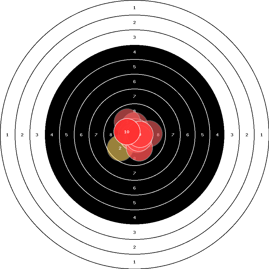 hit position: 0.42 mm rechts, 0.19 mm hoch