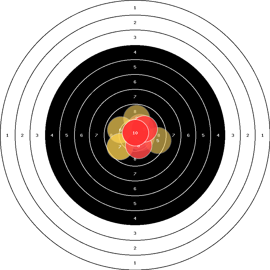 hit position: 0.29 mm left, 0.36 mm low