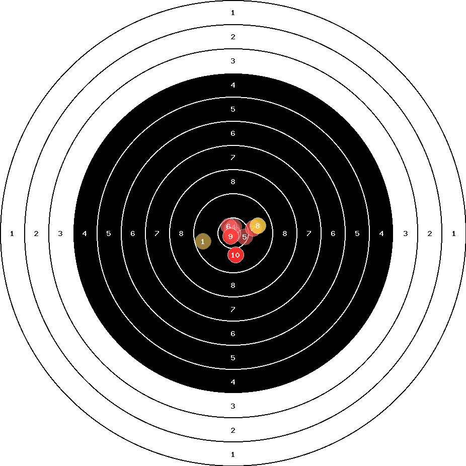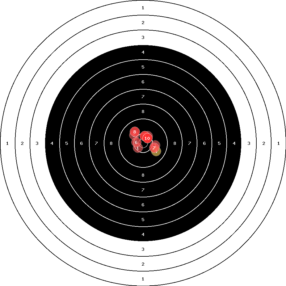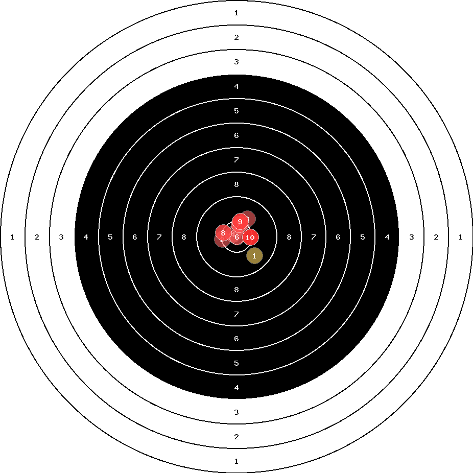 hit position: 1.41 mm right, 0.38 mm low