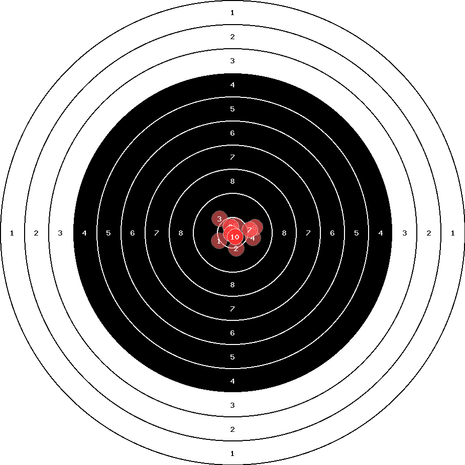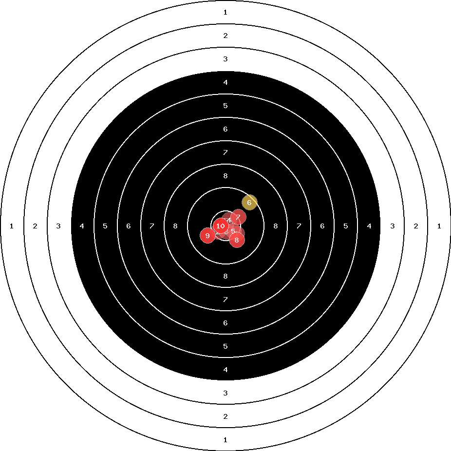 hit position: 0.67 mm right, 0.23 mm low