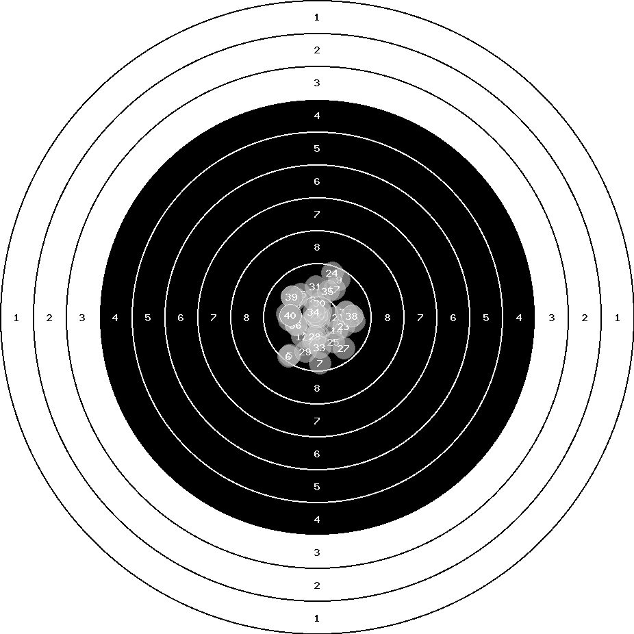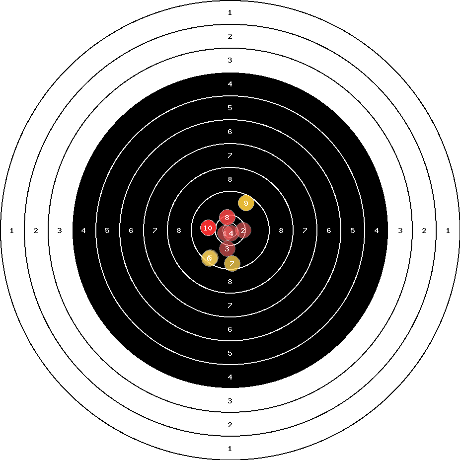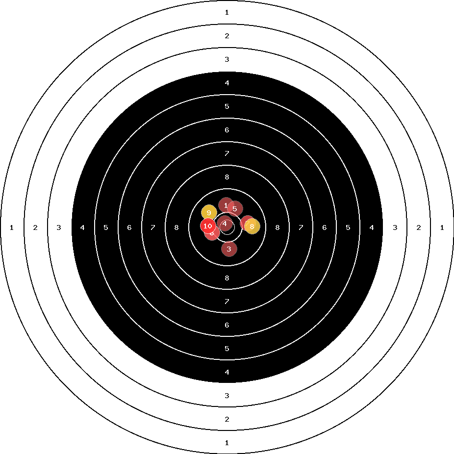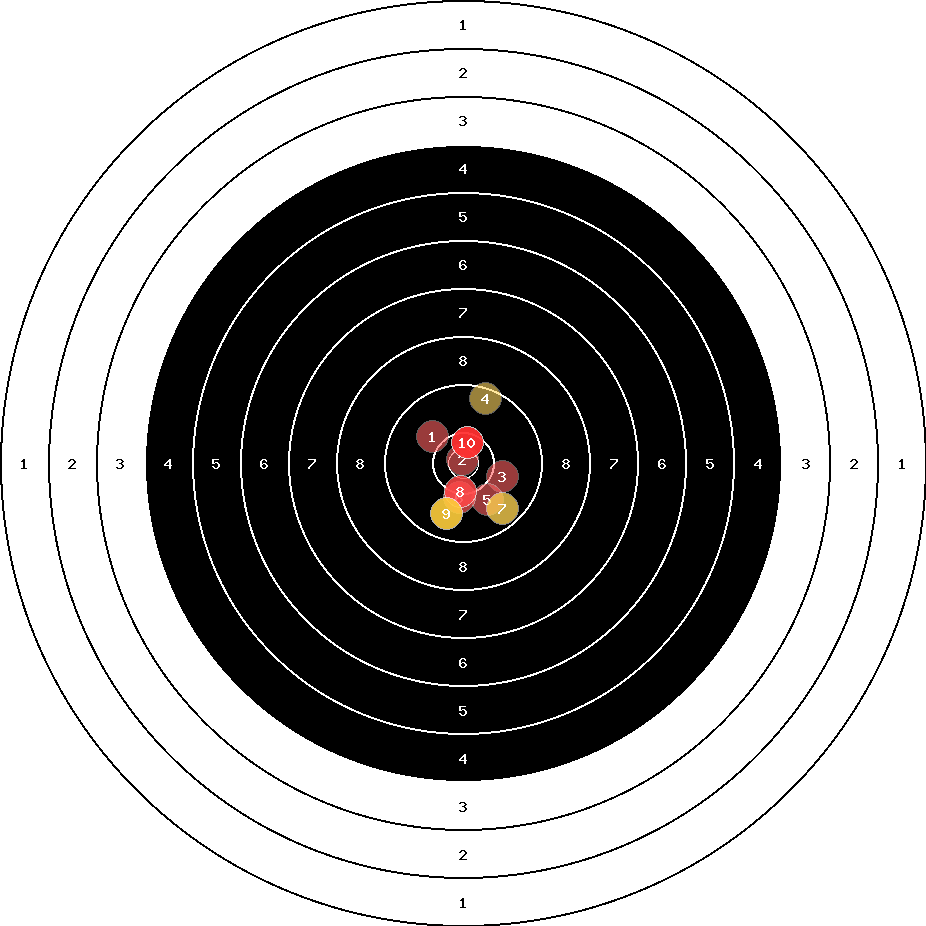 hit position: 1.2 mm right, 1.5 mm low